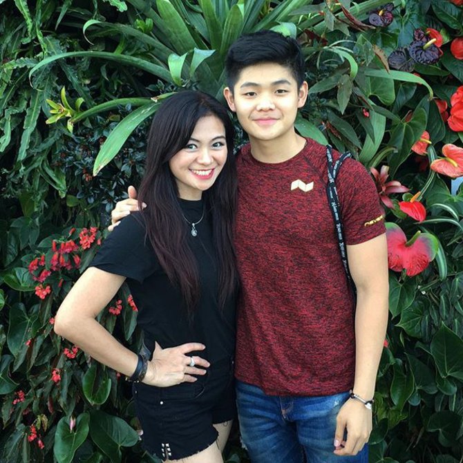 Sang ibu tampak memakai kaos hitam dan shortpant sementara Alex sambil memakai kaos merah ia berpose merangkul pundak ibunya.